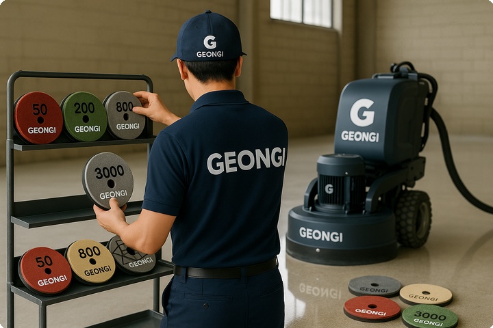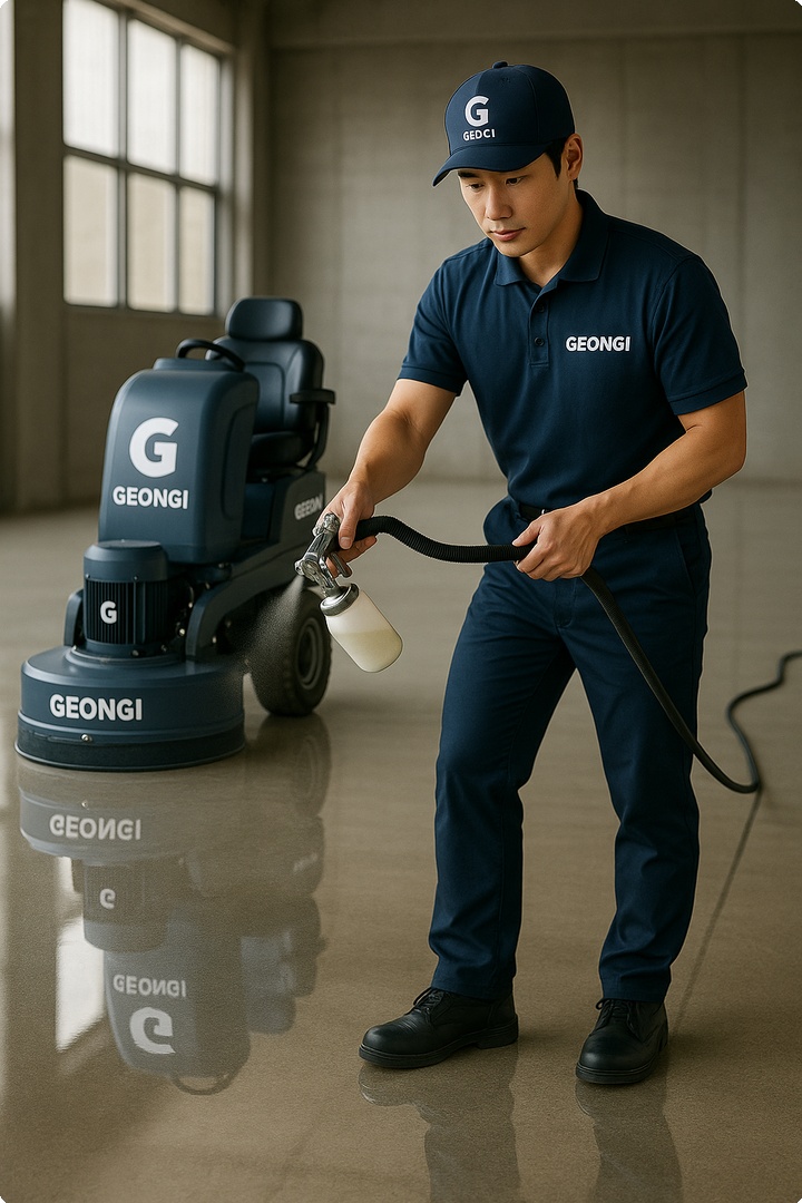 완벽한 폴리싱의 기초가 되는 표면 준비 작업입니다. 크랙 보수, 오염물질 제거, 표면 정리를 통해 최상의 바닥 상태를 만듭니다.